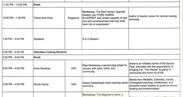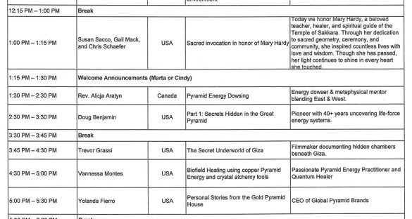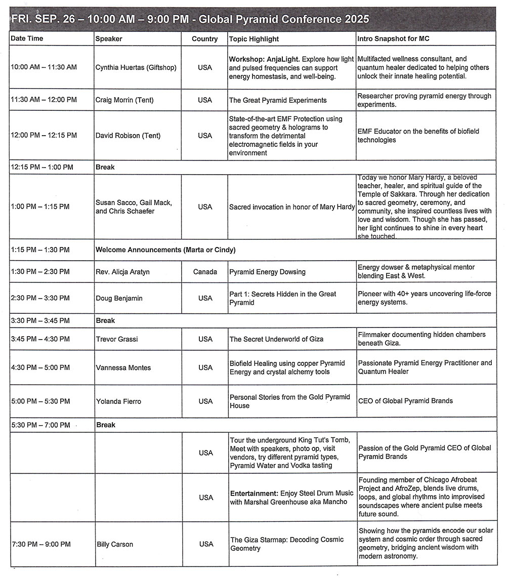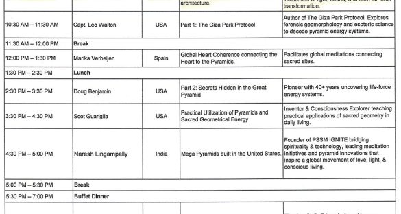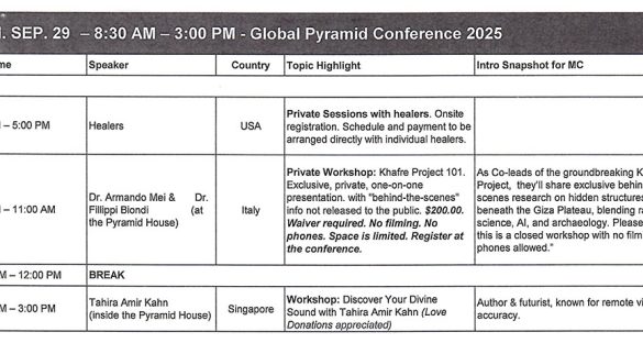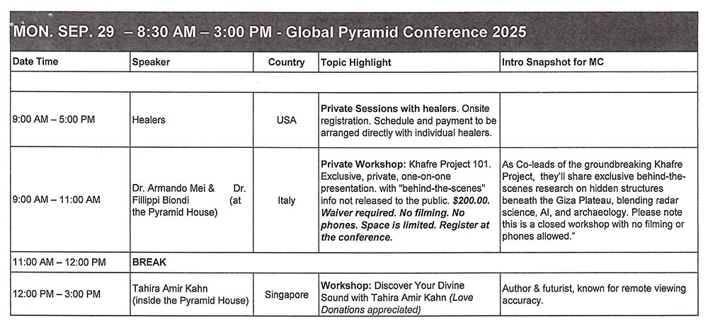 Timetable of Talks/Workshops at the Global Pyramid Conference 2025