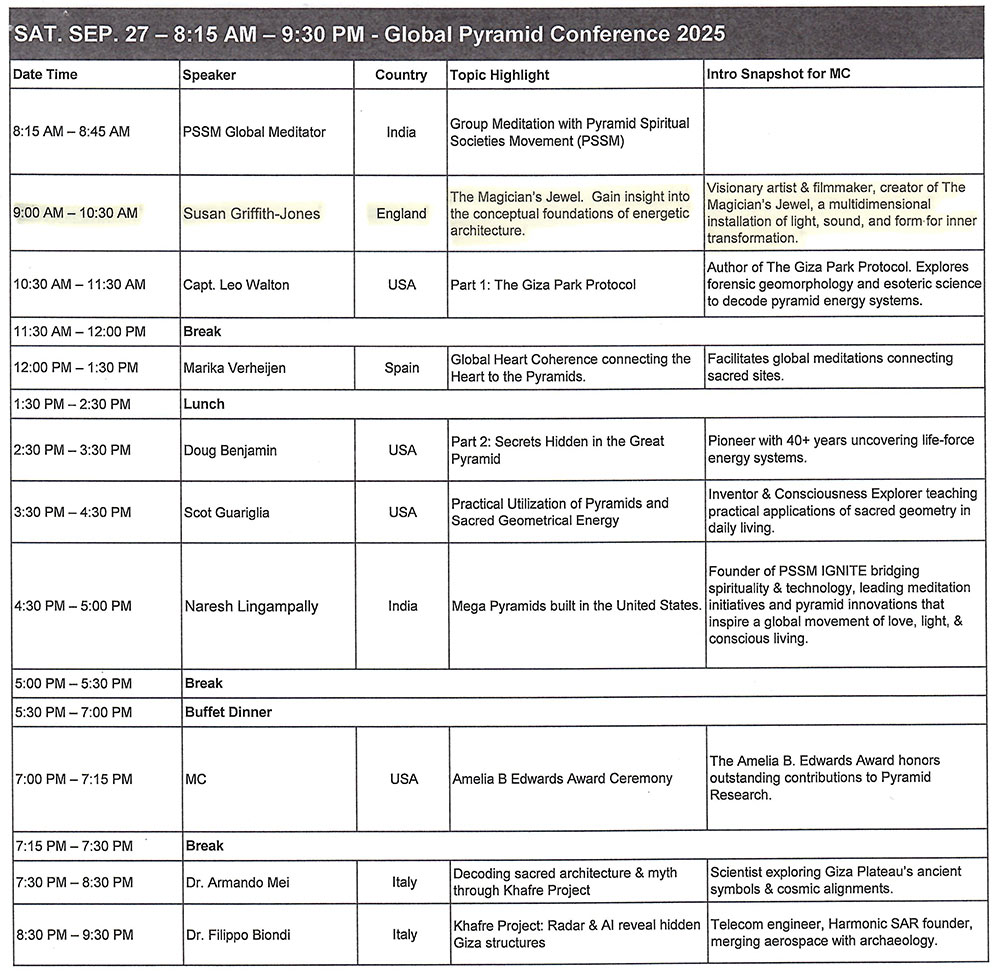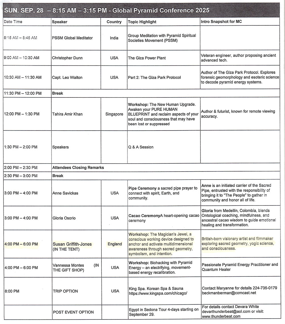 GOLD PYRAMID, GURNEE, ILLINOIS: A TALK AND WORKSHOP AT THE GLOBAL PYRAMID CONFERENCE, CHICAGO, USA, 26th-29th SEPTEMBER 2025