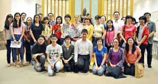 Singapore – On 16 October 2013, a thought-provoking sharing session on the eight worldly dharmas was conducted at KMSPKS by British Buddhist, Susan M. Griffith-Jones, who has resettled in Nepal. She flew in to Singapore to conduct this session for youth, highlighting to them how the four pairs of worldly dharma: gain/loss, praise/censure, fame/disgrace and pleasure/pain are driven by the five negative emotions of mind – jealousy, desire, anger, pride and ignorance – as their captain. Through cultivating awareness of one’s own mind-state, these five could be transformed into positive aspects of wisdom. The session ended with interesting and creative skits on the eight worldly dharmas put up by the 35 participants.